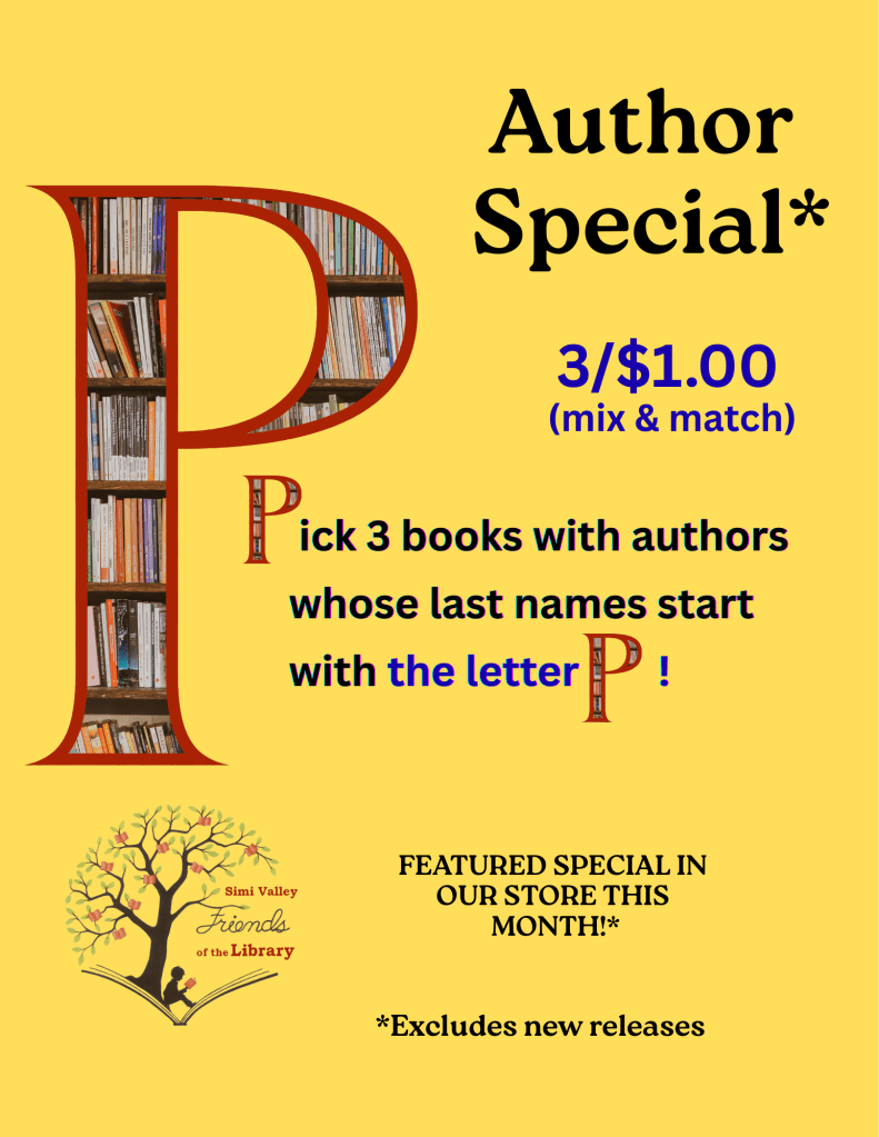 The Simi Valley Friends of the Library is a non-profit organization that works in support of the Simi Valley Public Library. The Friends are best known for their volunteerism, special programs, fundraising and their Friends of the Library Bookstore which is located inside the Library. Your contributions allow us to undertake projects the library would not otherwise be able to afford. Our organization is solely a volunteer operation with approximately 90% of our proceeds going to the library for the purchase of new materials, equipment and programs. None of the money is spent on library operating costs. All libraries need friends. Won’t you join us?